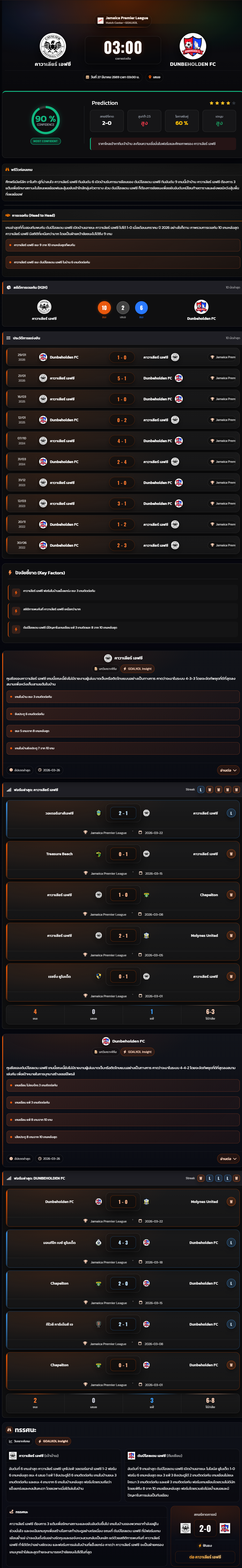 วิเคราะห์บอล จาเมก้า พรีเมียร์ลีก 2025-26 คาวาเลียร์ เอฟซี vs Dunbeholden FC