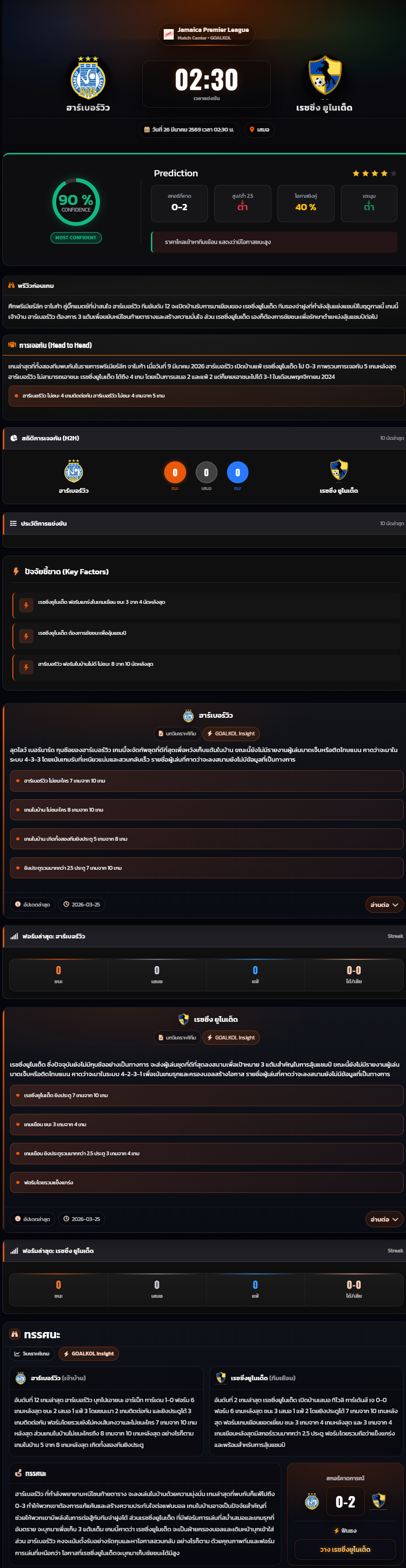 วิเคราะห์บอล จาเมก้า พรีเมียร์ลีก 2025-26 ฮาร์เบอร์วิว vs เรซซิ่ง ยูไนเต็ด