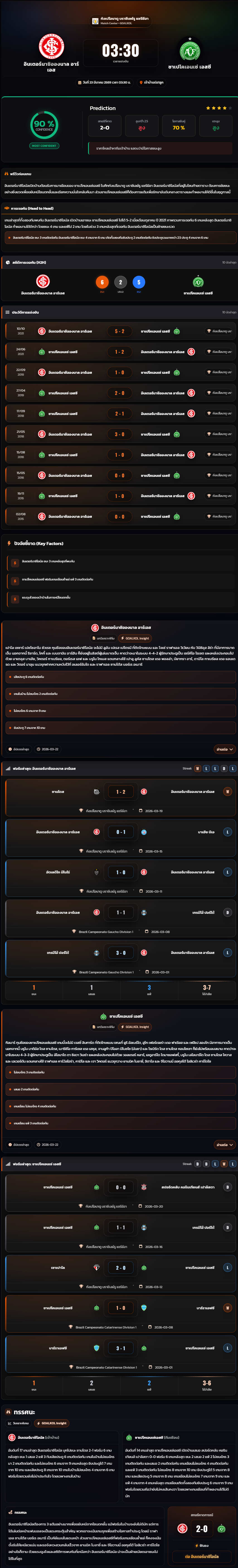 วิเคราะห์บอล บราซิล แซรียีอา 2026 อินเตอร์นาซิอองนาล อาร์เอส vs ชาเปโคเอนเซ่ เอสซี