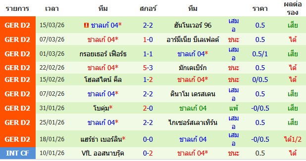 ผลงาน 10 นัดหลังสุดของทีม ชาลเก้ 04