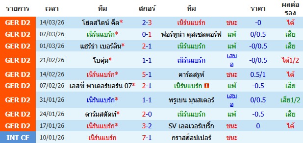 ผลงาน 10 นัดหลังสุดของทีม เนิร์นแบร์ก