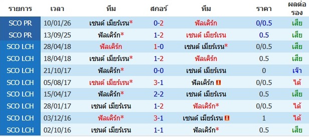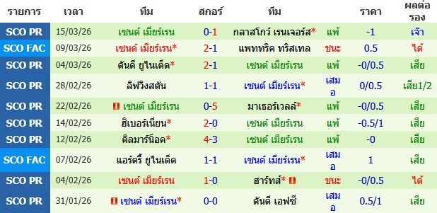 ผลงาน 10 นัดหลังสุดของทีม เซนต์ เมียร์เรน
