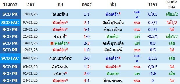 ผลงาน 10 นัดหลังสุดของทีม ฟัลเคิร์ก