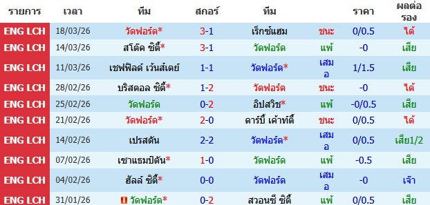ราคาบอล : วัดฟอร์ด ต่อ 0.5