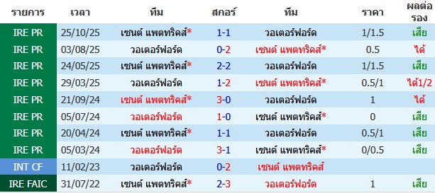 วอเตอร์ฟอร์ด VS เซนต์ แพตทริคส์